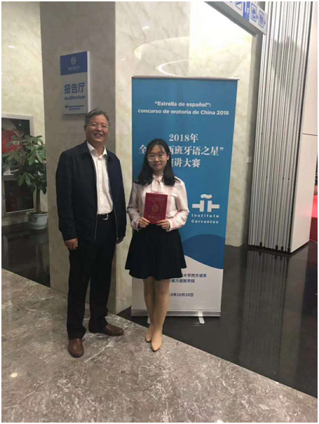 10月20日,2018年全国“西班牙语之星”演讲大赛在上海外国语大学举办。经过近6小时的激烈角逐,北京外国语大学西葡语系四年级学生王云芃获得高年级组冠军,二年级学生王者兴获低年级组季军。