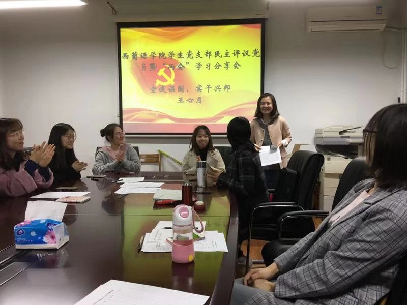 本次宣讲会是支部党员发展工作的重要组成部分,也是西葡语学院学生支部开展“不忘初心、牢记使命”主题教育的系列活动之一。宣讲会上,学生支部委员会的代表以及党员代表不仅解答了积极分子关心的问题,而且激励新生们向党靠拢的决心,调动了全院学生的入党积极性,是一项现实意义和思想教育意义兼备的活动。
