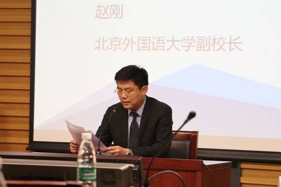 在赵刚的发言中,他首先肯定了北京外国语大学西葡语学院自新中国成立以来为祖国建设输送了大量优质人才。他指出,近些年,受新时代教育理念的指引,在中国出现了西班牙语、葡萄牙语学习热潮,但目前全国高校西葡语专业师资培养模式与制度不够完善、亟待优化;而正是为了使全国西葡语专业教学能够更好地应对新时代的新要求,北京外国语大学西葡语学院决定依托自己的学科建设优势、汇聚优质资源,成立全国西葡语教师发展中心,以期深化与国内外各大高校的合作,通过研讨会、教学工作坊、系列讲座、学术研究项目等方式为全国西葡语专业教师提供更多的学习、交流与合作的机会。赵校长以建设新时代高水平教师队伍为出发点,为中心的发展提出三个“希望”:第一,希望中心坚持“四个自信”,以服务国家人才需求为导向,做好教师发展的战略规划;第二,希望中心秉持创新进取的时代精神,使创新成为教师发展的持续追求;第三,希望中心响应教育部“新文科”建设的号召,打造交叉融合的学科景观,整合一切资源,走强化专业优势与跨学科、跨专业的教师培养与发展道路。
