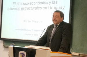 贝尔加拉介绍了乌拉圭经济社会的发展历程、商贸服务现状、金融财政政策、结构性改革以及当下乌拉圭经济面临的机遇与挑战等内容,并与西葡语系师生就上述话题进行了深入交流互动。